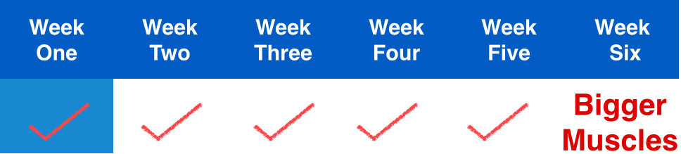 Similarly in your 6 week cycle, your body will be synthesising new proteins, adding new cell volume and firing more efficiently. But it will take 6 weeks for you to see noticeable results.
