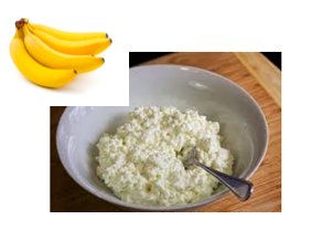 This snack is great for post workout time if your meal gets delayed. Cottage cheese provides plenty of proteins and fats. Bananas provide fast acting carbs.