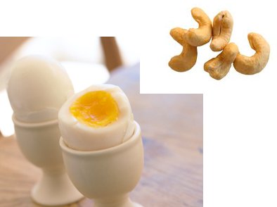 The boiled egg/cashews combo might look strange but try it and tell me. Hard boiled eggs are best source of proteins and fats. Add some cashews for fats, proteins and some carbs too.